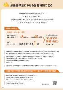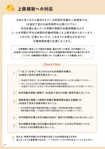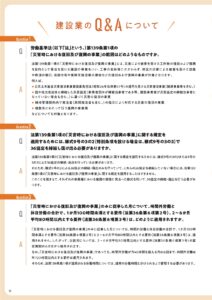 2024年4月から建設業も時間外労働の上限規制が適用されて1年以上経っていますが、人手不足や短い工期等の要因で頭を悩ませている企業さんも多いかと思います。ただ、最近の若い子達や保護者さんはとても残業に敏感なので、企業さんがしっかり残業について知っておく必要があります。こちらの冊子は、時間外労働の上限規制についての説明や手続きフローチャート、36協定の記載例、対応方法だけでなく労働時間の考え方や皆さんが疑問に思う事をまとめたQ&Aもありとても参考になります。また、説明も図解や様々なパターンの記載例でわかりやすく作られているので、時間外労働の上限規制をあまり理解できていない方でも十分な知識を得ることができると思います。