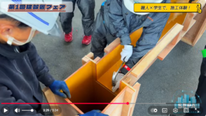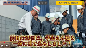 報告動画では学生さんのインタビューも盛り込まれていますし、施工体験学習の様子もとてもよくわかります。インスタで報告動画をアップしていますが、インスタとは違う視点や表現で作成されているので是非ご覧くださいね!報告動画はYouTubeにアップしています!下の文字をクリックしてもらうとYouTubeにとびます。