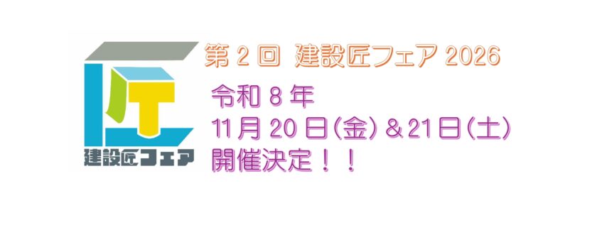 こんにちは!先月に沢山の方にお越しいただいた「第1回 建設匠フェア 2025」は、来年は「第2回 建設匠フェア 2026」として11月20日(金)&21日(土)に開催決定です‼ 場所は今回と同じです。