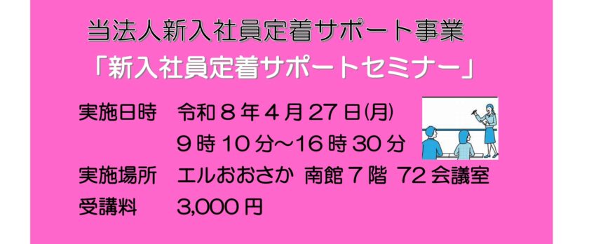 こんにちは!今日は当法人「新入社員定着サポート事業」として実施する「新入社員定着サポートセミナー」のご案内です。