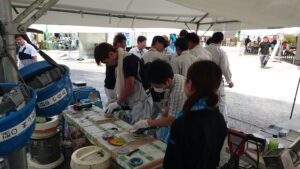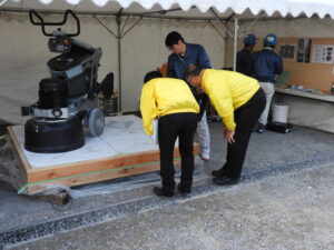 「ポリッシュコンクリート」の研磨・鏡面仕上げ体験体験では、事前に作ってくれているコースターほどの板を研磨機を使って磨く体験して頂きます。磨いていくとだんだん板がツルツルになり輝いてきます。普段使うことのない研磨機を使用して板が磨かれていく過程を楽しんでもらいたいと思います。こちらのブースは大きな研磨機も見せてくれるので屋外ブースになります。第11弾目でご紹介させて頂いたコンクリート圧送ブースのお隣なので、是非どちらも体験してみてくださいね!